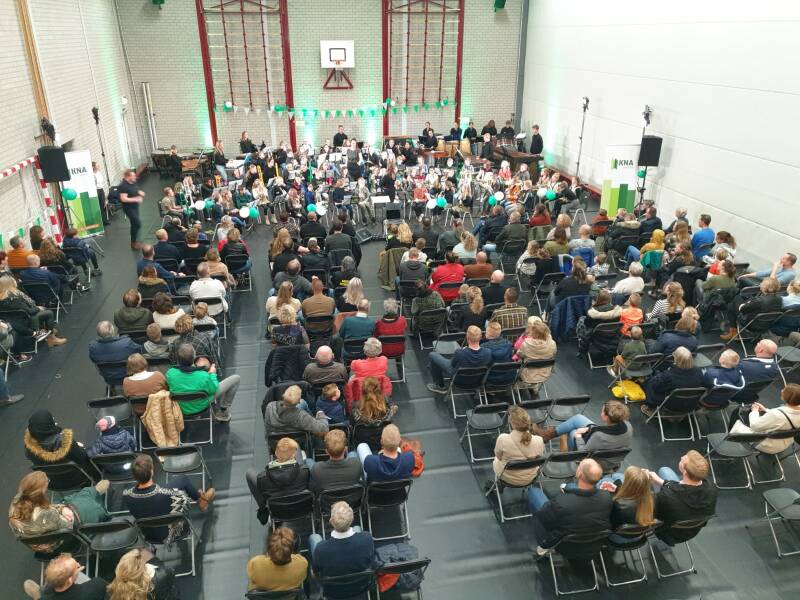 Nienke en Tjeerd hebben voor de kinderen van de Sprong en Nederwoud kennismakingslessen muziek verzorgd. Afgelopen zaterdag is dit project afgesloten met een GRANDIOOS, GRATIS concert samen met de jeugdorkesten van KNA in 't Sporthuus.